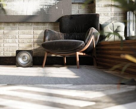 Сабвуфер SVS SB-1000 Pro имеет отключаемую автоматическую систему перехода в режим ожидания и триггерный вход для интеграции в систему автоматизации. Энергопотребление в режиме ожидания составляет 0,5 Вт, поэтому полностью обесточивать систему каждый раз совсем не обязательно. Тяжелый и прочный корпус сабвуфера внешне выглядит аккуратным и компактным. Благодаря скругленным граням корпуса и округлому же грилю он не привлекает внимания и незаметно растворяется в интерьере. Единственное, что выдает его присутствие в затемненном помещении, — яркий синий светодиод, просвечивающий сквозь ткань гриля. Гриль прочно крепится на корпусе.