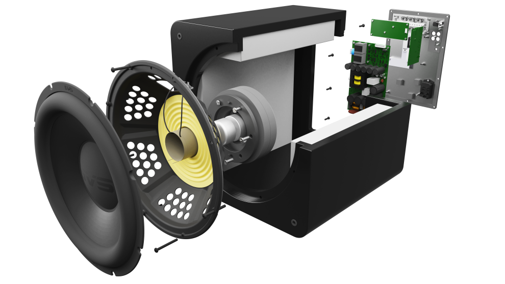 - Передний 12-дюймовый высоко-экскурсионный SVS-драйвер